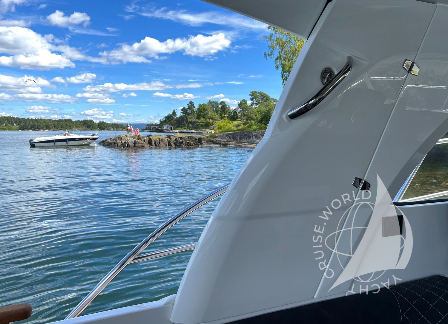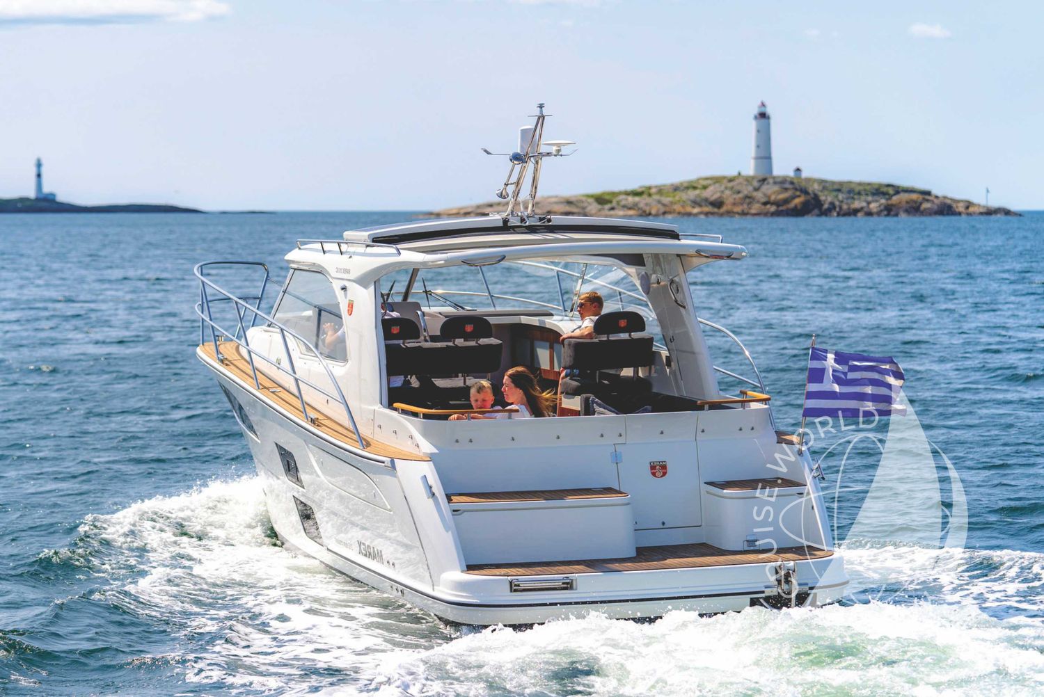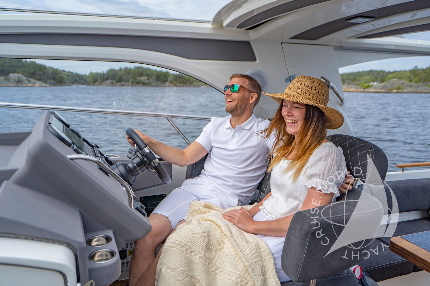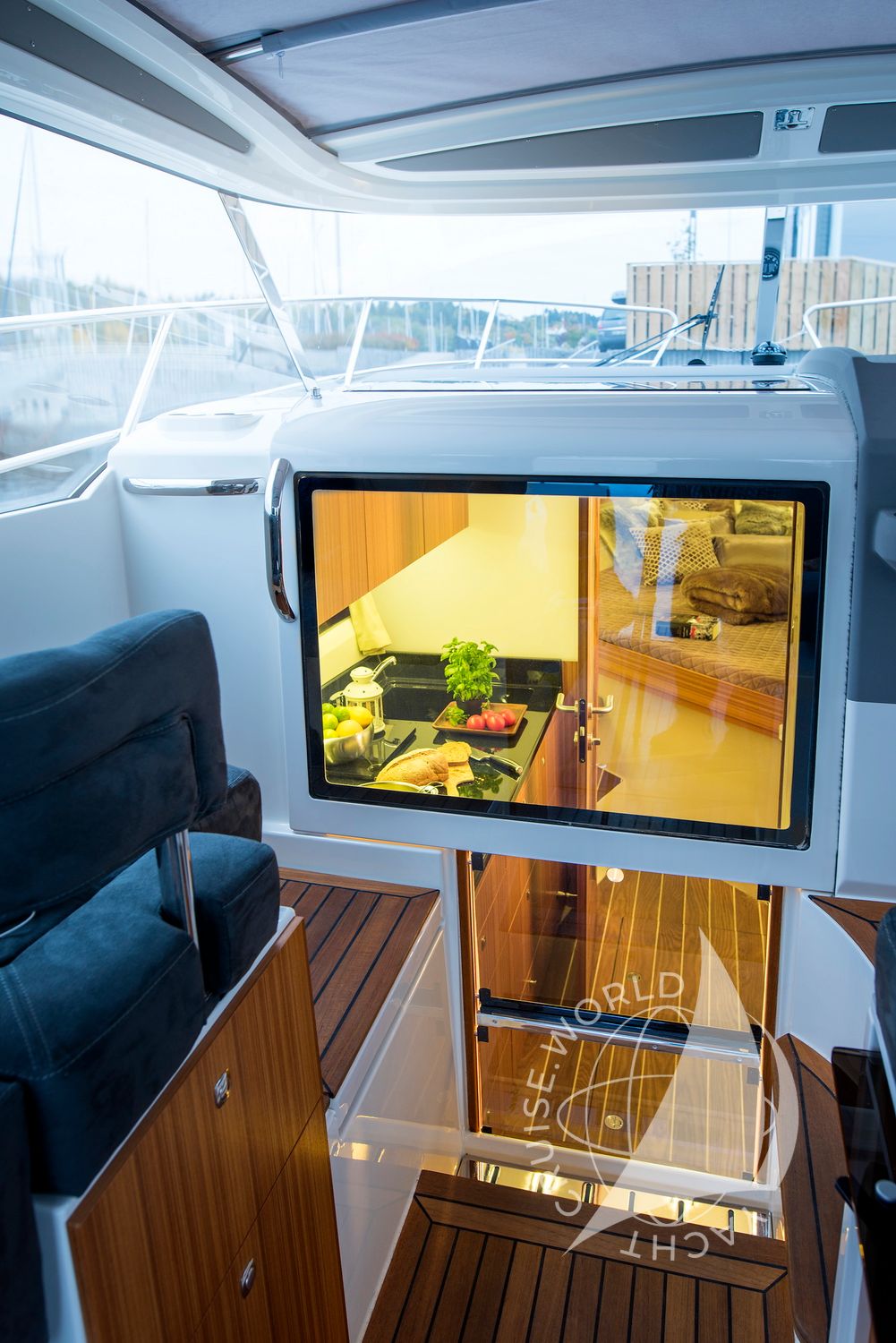 - Ergonomic helm station with large chartplotter