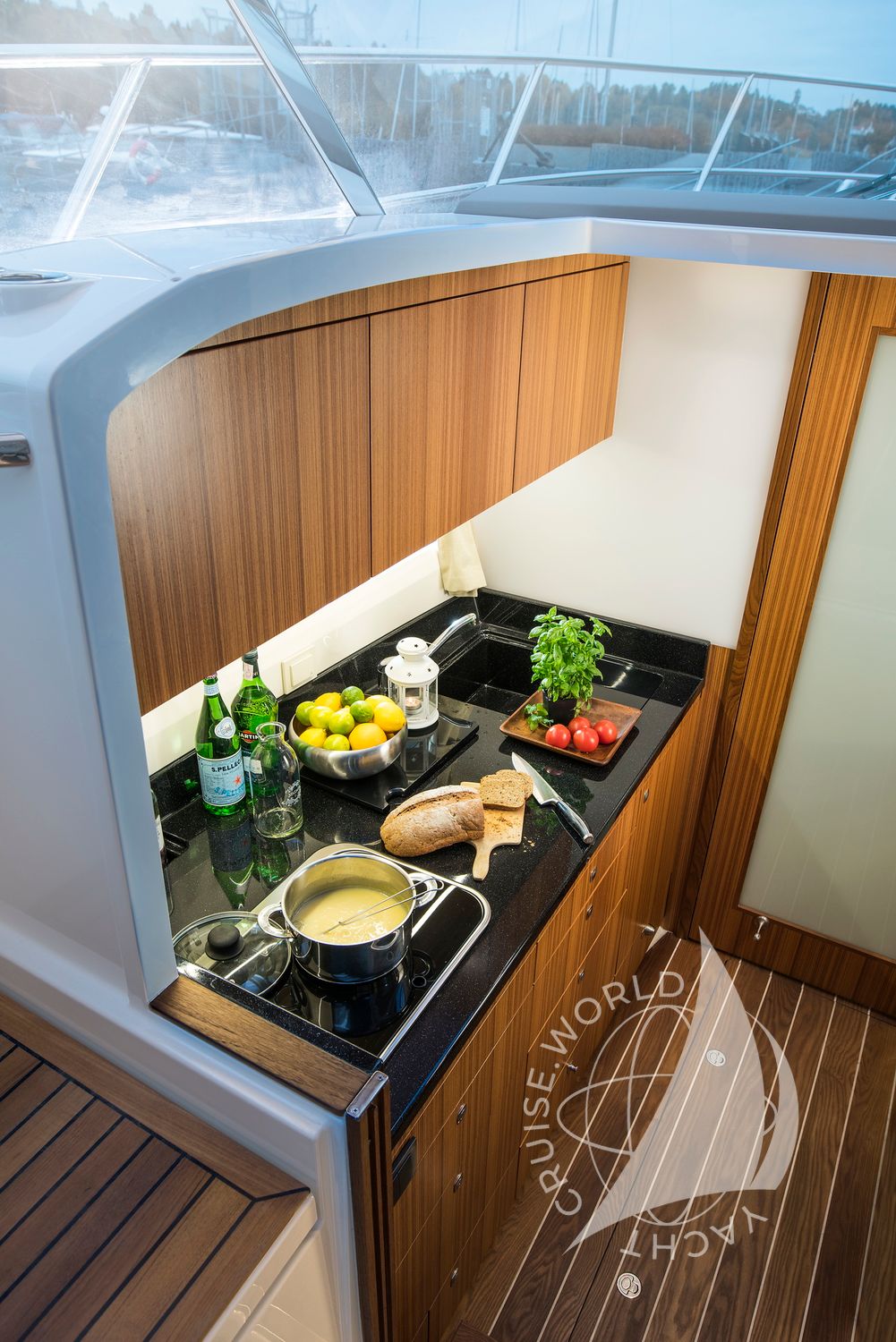 - Galley with sink, oven, gas hob