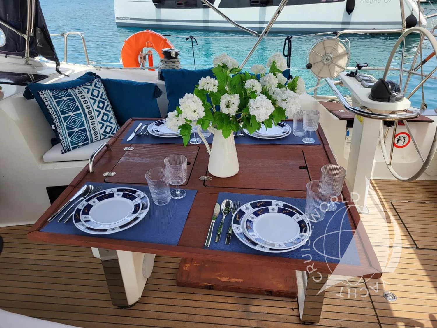 На палубе:- Подушки в кокпите